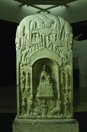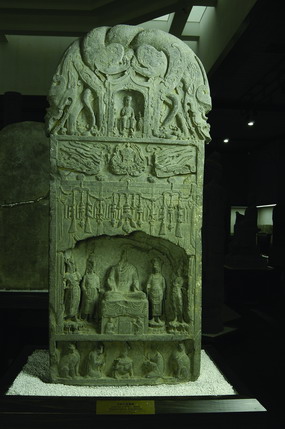 河南现存东魏时期的石刻造像主要分布在郑州、洛阳周围及黄河以北的新乡等地,以螭首扁体造像碑为主,这种石刻造像形制上的变化,反映了佛教造像由外来形式向中国汉化转变的过程。东魏造像碑不仅在造型上与前期不同,而且在雕刻内容上也与前期有较大的变化。碑身正面或凿一龛,或凿数龛,龛形既有早期的那种以菩提树枝组成的拱形龛,也有龛楣饰火焰纹的尖拱形龛,还有用帷幔流苏装饰的帐形龛。龛内多雕一佛二弟子二菩萨,有的在龛外雕二辟支佛或二力士。碑阴及碑侧刻千佛或线刻佛传故事。“辟支佛”,就是生在无佛之世,自悟十二因缘而得解脱生死轮回,证入涅槃果位的,其形象面目与佛相同,头顶微现螺髻,但身体的比例同菩萨一样。由此可见东魏时期的佛教造像在宣传大乘佛教的同时,也注重中乘佛教所主张的“独觉”和“缘觉”的修行。特别是在东魏造像碑中还出现了大量的神王形象,这些神王形象在北魏时期的石窟中有较多的出现,多雕刻于石窟壁龛的佛像坐下(如巩县石窟寺等),而在造像碑中则多刻于方形碑座的四周,如嵩阳寺伦统碑、北周村造像碑的碑座四面均刻有八位神王,有些碑座神王像还刻有神王名字榜题,如伊萨贝拉•斯切瓦特•嘎特那美术馆藏“骆子宽造石佛立像”上的神王题名,可为推知其他处神王名称的珍贵标尺。它与北魏时期造像座下多刻供养人像以及其所乘坐的车马等反映当时社会生活的内容相比,更增加了宗教的神密性,这是东魏造像碑雕刻的一大特点。对北朝晚期造像碑产生着极大的影响。
