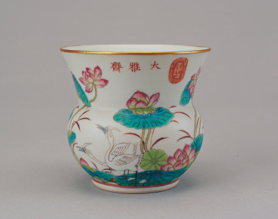 图14 清光绪 粉彩荷花鹭鸶纹奓斗