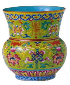 图13 清光绪 黄地墨彩花蝶纹奓斗