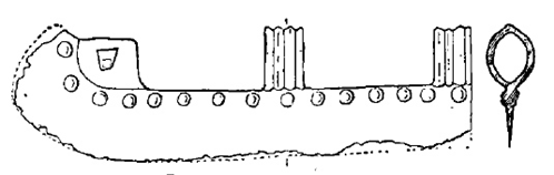 北京昌平白浮西周早期2:24刀,刀锋向上、后翻卷,刀背处有15枚乳钉,背上三銎。通长24厘米。[12]