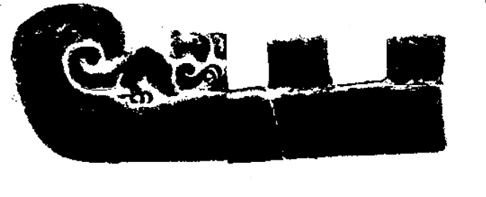 河南安阳殷墟四期帝辛时刀,直刃直背,锋向上、后翻卷,背部三銎,近刀背处有十个乳钉,旗下有阴线夔龙纹四个。标本94通长31厘米,刀头宽11.8厘米,刀身宽8.5厘米。[11]