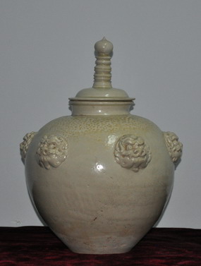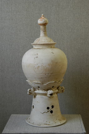 图一 唐代塔式罐的上部----白釉狮首塔形盖罐