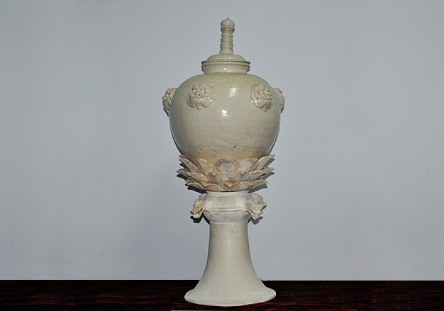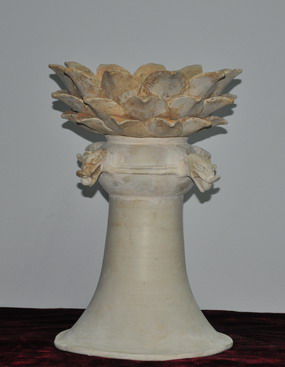 图二 唐代塔式罐的下部----彩绘白陶龙首莲花座