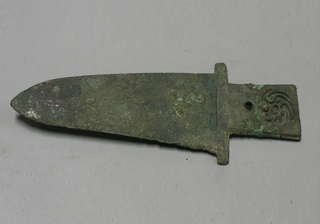 漩涡纹戈,商代后期青铜兵器,郑州人民公园出土,通长20.3厘米,宽7.2厘米。