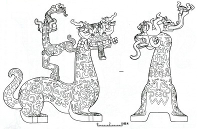图四  河南省文物考古研究院藏青铜神兽及线描图