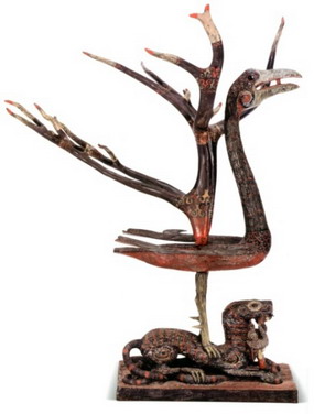 图九  湖北省九连墩战国古墓群1号墓出土的漆木龙座飞凤
