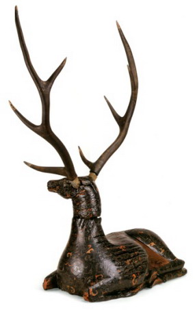 图八  湖北省九连墩战国古墓群2号墓出土的漆木卧鹿