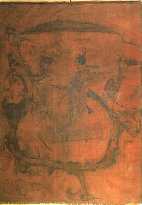 图十  湖南长沙楚墓出土的战国人物驭龙帛画