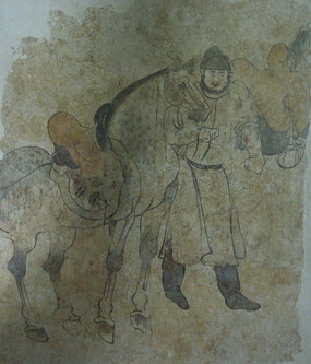图十三 唐安国相王孺人唐氏壁画墓 墓道东壁牵马图(高197厘米,宽173厘米)