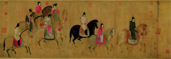 图十八 《虢国夫人出游图》(绢本,纵51.8厘米,横148厘米,为北宋画院画家依据张萱原作所摹)