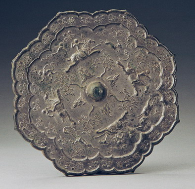 图二十三 骑马狩猎纹铜镜(直径28.5厘米,河南扶沟县出土)