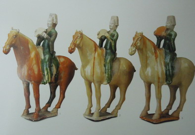 图二十五 三彩骑马乐俑群 3 件(1954年河南洛阳出土)