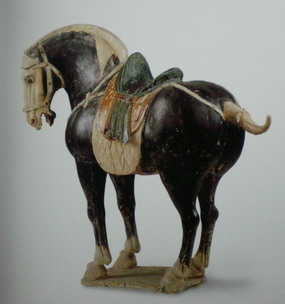 图二十九 黑釉三彩马(盛唐, 高66.5厘米,1972年河南洛阳关林出土)
