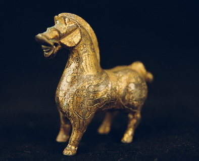 图二十五 鎏金铜马(东汉,高5.9厘米,长6.2厘米,1974年河南偃师寇店出土)