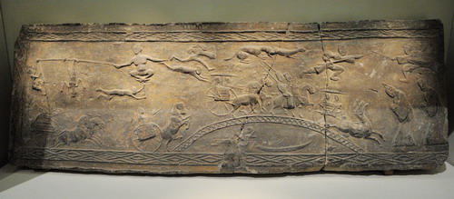 图二十三 戏车画像砖(东汉,长62厘米,宽32厘米,河南省南阳市新野县出土)
