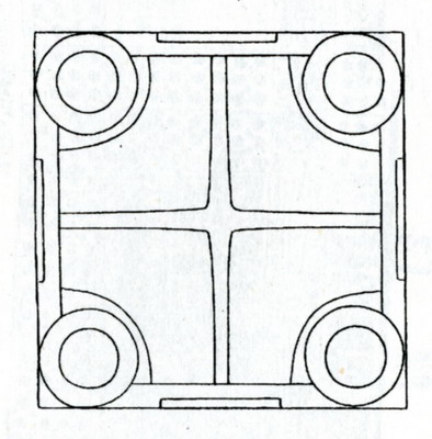 图二  饕餮乳钉纹铜方鼎底的“十”字形加强筋