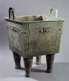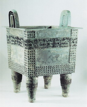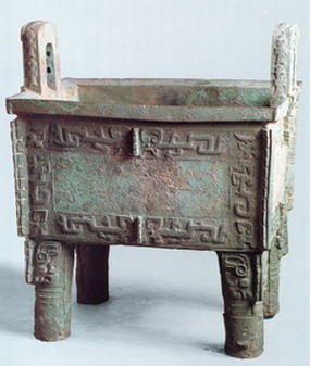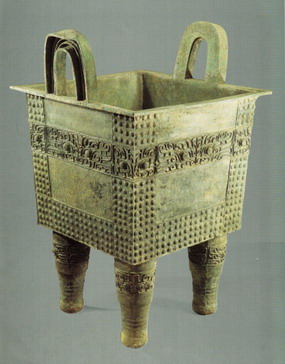 青铜方鼎代表较高的社会等级,整个商周时期,方鼎在青铜器中所占的比例极低。方鼎与通常所见的鼎最大的差别在于其“方”。《易•坤六二》:“直、方、大。”注:“地体安静,是其方也。”《淮南子•天文训》中有:“天道曰圆,地道曰方,方者主幽,圆者主明。”可以说方鼎是我国古代一种朴素自然观的反映。