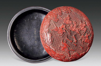图8  清代雕漆人物盒