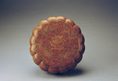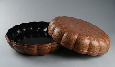 填漆描金云龙纹菊瓣式盒