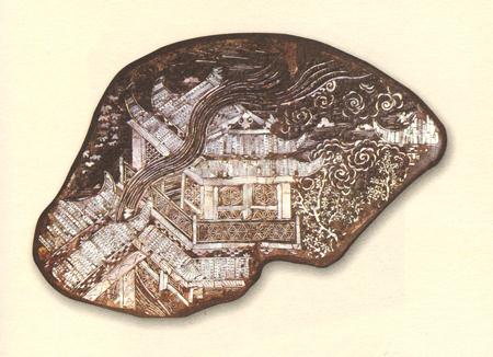 图4  元代广寒宫图嵌螺钿黑漆盘残片