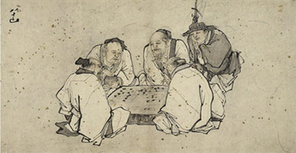 明清时期,四皓形象逐渐发展成为仙寿的代表,四皓被作为神仙也供奉,诗文、绘画作品中也往往着意刻划四皓银须皓首、怡然山水的仙寿形象。(图8、图9)