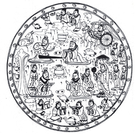图3 南昌火车站东晋墓曾出土彩绘漆盘线描图