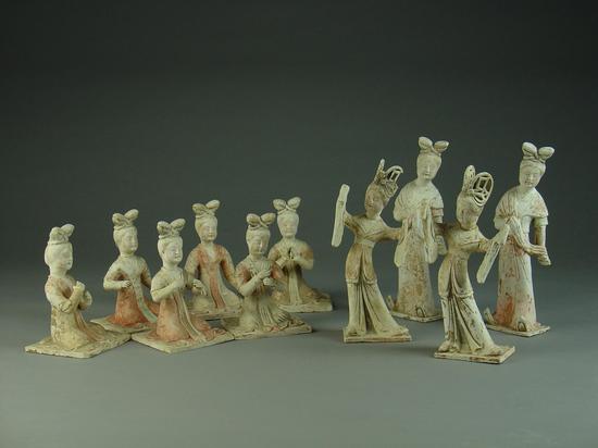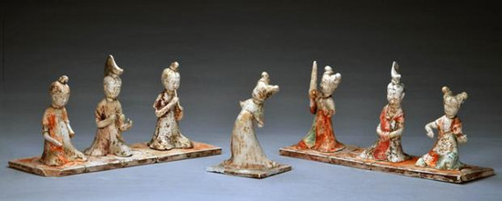 图12  河南巩义市北窑湾唐墓绘彩乐舞女俑群(7件)