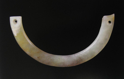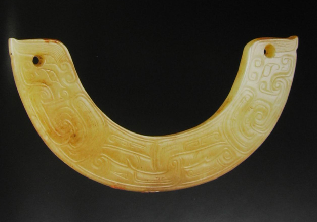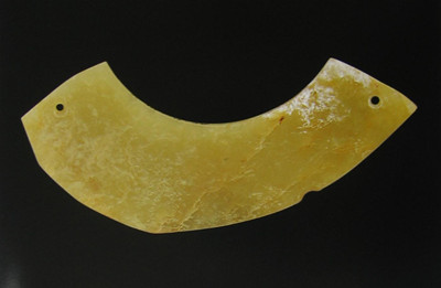 璜是一种弧形的玉器,早在新石器时代就已经出现,数量众多,分布区域广。新石器时代中期,玉璜广泛分布于长江、黄河流域,以长江流域的发现最多。新石器时代晚期,玉璜的分布区域开始逐渐扩大,中部包括了长江以及黄河流域,北至松花江流域,南至珠江流域,西至长江上游的昌都县。[3]夏商周时期,玉璜成为重要礼器之一。