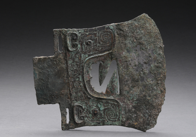 青铜钺主要流行于商周时期。商代铜钺在造型上繁缛狞厉,尤其是大型钺,硕大的尺寸、镂雕的兽面,展现出一种恐怖恫吓的威仪。至西周时期,铜钺开始趋于小型化,数量大幅减少,造型对商代的多有继承。春秋战国时,铜钺的使用重点已移至南方。汉代,随着铁兵器的兴起,铜钺逐步被铁钺取代了。[5]