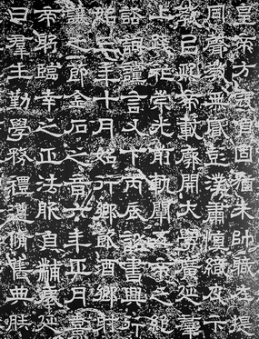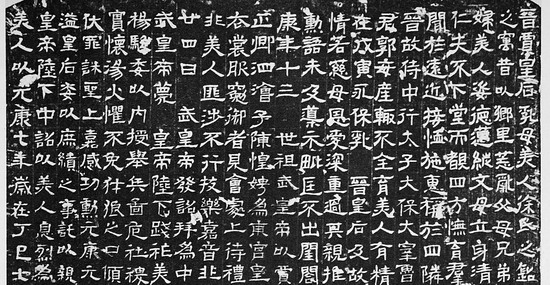 志文隶书,佳丽遒美,规范整饰,且保存完整,是当时流行的书法风格。(图二)西晋的书法是在汉魏书法繁荣的基础上发展起来的。风格变化多姿,篆、隶、正、行、草诸体皆备。值得注意的是出土于汉魏洛阳和洛阳以东约15公里的偃师的碑志,铭文的间架结构及用笔方法切近,风格相同,它们都是隶书,严谨庄重,气象雍容,已汉隶醇茂之意,方折顿挫更为加强。如横画起笔的“蚕头”变成了方整的“折刀头”,撇笔收笔也出方棱角。左右对称的两竖不再垂直而是分张外拓;右钩不再是又长又重的弯钩而是短小平挑接近楷法。总之圭角呈露,装饰意味浓厚,是写刻结合的效果。如果把不同碑志中的同一个字一一对比,其特点便一目了然。这些作品并非一人手书,使用的地点也不相同,时间则延续了四十年左右,反映了当时洛阳、偃师一带流行地方性书体。西晋《三临辟雍碑》立碑较早,书写严谨,是这种书体的代表作。(图三)这种具有典型的地方性特征的书法风格,被专家称作“西晋洛阳体”。[5]