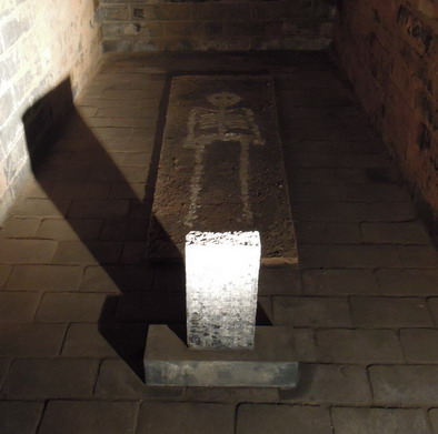 图四  西晋裴祇墓志在墓中的复原图(摄于洛阳古墓博物馆)