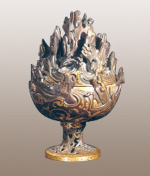 博山是指道家文化中的海上仙山。传说东海上有三座仙山,是为蓬莱、方丈、瀛洲。早至秦始皇时期,即派人向东海寻访仙药,以祈求长生不老。汉武帝时期神仙思想依然盛行,除遣人向东海寻仙问药外,武帝自己亦三次亲身至东海边,以期得见仙人。在这种神仙方术思想的影响下,秦汉社会在方方面面都反映出了强烈地求仙意识,熏香亦成为时人追求得道成仙的活动方式。焚香甚至被认为是君王秉受神谕,沟通天人的方式之一。熏香活动一旦融入了宗教思想的内容,就被赋予了更为丰富的文化内涵。无怪乎有学者说香具的发展与使用是香文化的外形身躯,而宗教文化及世人对香的感受与品鉴无疑为我国香文化的精神内核。