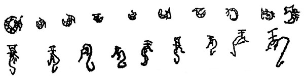 尽管现实生活中无龙,但是在汉字中,龙字出现较早。甲骨文金文中皆见龙字,且有许多不同的写法(图1、图2)。