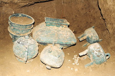 图8 宝鸡石鼓山4号墓K8中的铜簠(后排居中者)