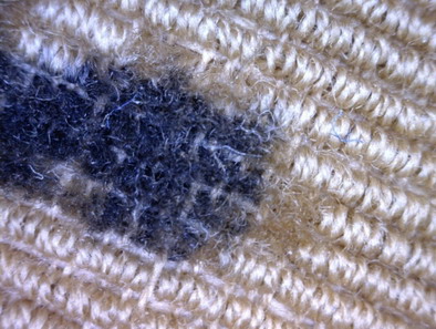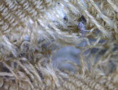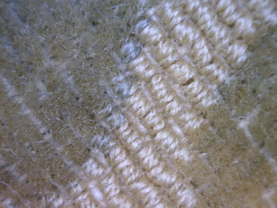 图10 《仿张若霭花鸟四条屏》加绒与素底交汇处(电子放大镜照片)