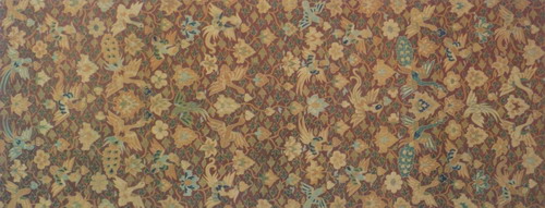 辽宁省博物馆藏北宋时期《缂丝紫恋鹊谱》(图17)完整地保存了两组图案。每组由五横排花鸟组成,连续不断的枝叶把牡丹、莲花、海棠等花卉连在一起,文鸾、仙鹤、鹦鹉、锦鸡、孔雀、鸳鸯等禽鸟在花丛中展翅飞翔,诸鸟嘴衔瑞芝,相对而飞。纹样造型于规矩中见灵活。此幅《缂丝紫恋鹊谱》以紫色为地,使用蓝、绿、白、黄等深浅不同的色彩表现花鸟的线条层次。此件缂丝保持原来匹料面貌,花纹完好无缺。