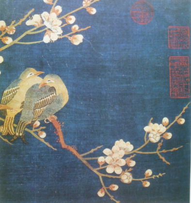图21 缂丝梅花寒鹊图轴,南宋,高89厘米,宽35.5厘米,故宫博物院