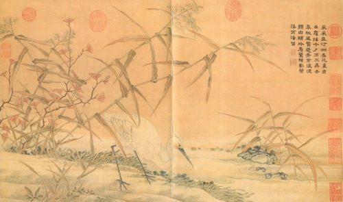图24 缂丝鹭立芦汀图轴,清代,纵40厘米,横67厘米,故宫博物院藏