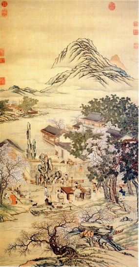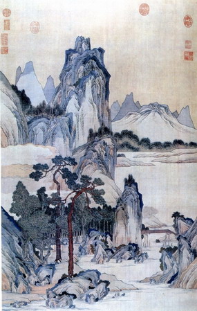 图27 缂丝山水图轴,清代,高108厘米,宽68.8厘米,台北故宫博物院藏