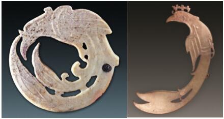 图6 玉凤(新石器,河北省天门市石家河遗址出土,中国国家博物馆藏)[5],玉凤(商代,河南省安阳市殷墟妇好墓出土,中国国家博物馆藏)[6]