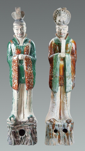 三彩文官俑,陶质,唐代,左俑高66.5厘米、右俑高65.5厘米。1991年河南孟津送庄乡西山头村东南连霍高速路基下出土。现藏亚洲精品久久久久中文第一幕-国产亚洲精品久久久久久打不开-国产成人精品中文字幕-少妇邻居内射在线-国产精产国品一二三在观看。
