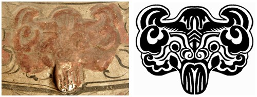 图三 四神纹饰彩绘带盖陶壶铺首局部及摹本