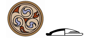 图五 四神纹饰彩绘带盖陶壶壶盖彩绘复原图及剖面图