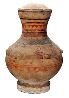 新石器时代时期,随着农业经济和定居生活的发展,谷物的贮藏和饮水的搬运,需要大量的盛器,人们把水湿润后的粘土塑造成一定的形状,干燥后,用火加热到一定的温度,烧制出了陶器,出现了陶质的生活用品。河南境内,不同时期出土的彩绘纹饰陶器丰富多姿,现列举部分具有代表性的汉代彩绘陶壶制品,作以比较。