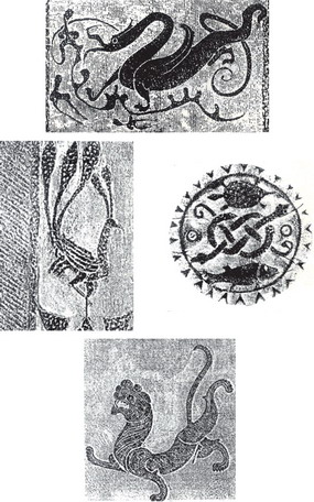 图九 河南汉代画像石中的青龙、白虎、朱雀、玄武四神纹饰造型图案