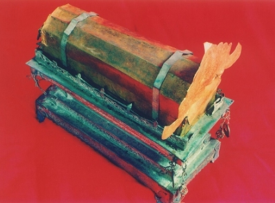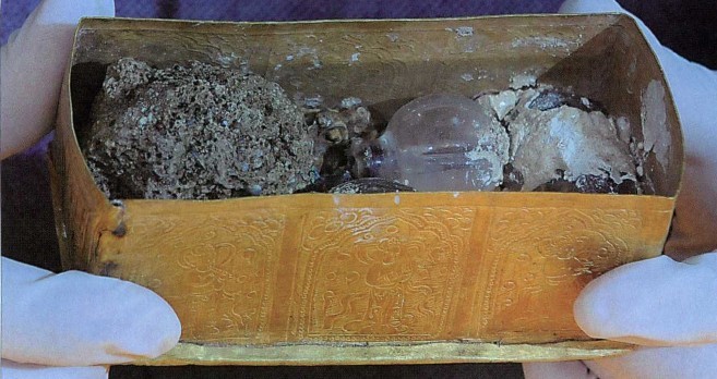 1964年,甘肃泾川大云寺发现的地宫中出土唐代佛舍利。公元690年10月,武则天又敕令两京(长安、洛阳)、各州都建一座大云寺。舍利由石函、铜函、银椁、金棺和玻璃瓶,层层套置。铜函通高13.2厘米,长12.3厘米,重590克;银椁高9.3厘米,长10.7厘米,宽8.4厘米,重351.5克;金棺高6厘米,长7.5厘米,宽5.4厘米,重107克。