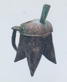 春秋中期至战国时期,之前流行的铜盉形制几乎不见,开始出现新型式的提梁盉(亦称鐎盉)、甗形盉。从墓葬出土青铜器组合关系来看,水器组合以盘、匜为主,酒器组合以壶、盉为主。可见,盉被匜取代之后,又恢复了最初的酒器功能。