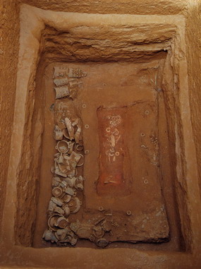 经过前后两次的钻探与发掘,初步确定了虢国墓地的性质及范围。它是一处规模宏大、等级齐全,排列有序且保存完好的大型邦国公墓。南北长590米,东西宽550米,占地32万平方米。已探明地下墓葬500余座(不含五十年代已发掘的墓葬)。所有的墓葬依墓主身份,地位的高低,由北向南各自成组,依次排列。各位国君及夫人的墓葬位于墓地的最北端,我们称之为国君兆域区。