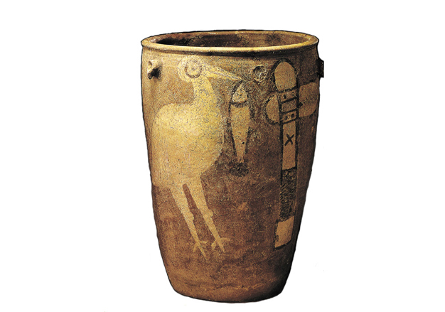 鹳鱼石斧图彩陶缸,陶器,仰韶文化,高47厘米,口径32.7厘米、底径19.5厘米。1978年河南省临汝县(今汝州市)阎村出土。现藏中国国家博物馆。