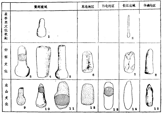 到了仰韶文化中期之后,我国新石器时代的农业生产普遍较以前发达了,这时的文化特点呈现出各地趋于一致性的倾向,生产技术和工具、制陶业的交流已相当普遍,无论哪一个地区的文化,都总是反映出毗邻地区另一种或几种文化影响的因素。在这种形势下,比较先进的舂捣法得以较快的推广,并在谷物加工这一环节中逐步取代了碾磨法而居于主导地位。从仰韶文化中期到龙山文化晚期,石杵的发现无论从数量上看、还是从分布地域上看,都更多,更广泛了。